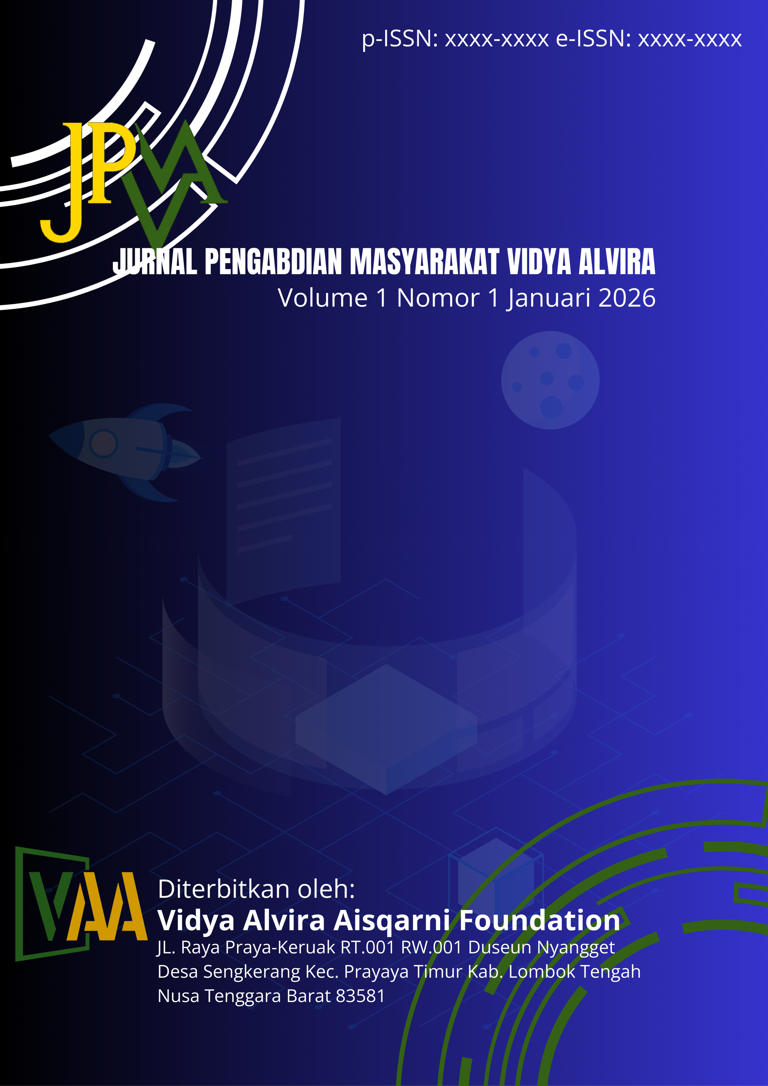 Jurnal Pengabdian Masyarakat Vidya Alvira (JPMVA) merupakan publikasi ilmiah bersifat multidisiplin yang menerima naskah hasil pengabdian mencakup berbagai aspek kehidupan sosial. Dalam bidang kesehatan dan kesejahteraan, jurnal ini berfokus pada kegiatan edukasi kesehatan, upaya pencegahan penyakit, pendampingan gizi, serta penerapan inovasi kefarmasian di lingkungan masyarakat. Pada sektor pendidikan dan literasi, JPMVA mewadahi pengembangan metode pembelajaran inovatif, program pelatihan guru, penguatan gerakan literasi, hingga praktik pendidikan inklusif. Selain itu, jurnal ini memberikan perhatian besar pada penguatan ekonomi kreatif dan UMKM melalui pemberdayaan ekonomi lokal, pendampingan pemasaran digital, serta pengembangan jiwa kewirausahaan masyarakat. Ruang lingkup jurnal juga mencakup implementasi teknologi tepat guna (TTG) yang dirancang untuk meningkatkan efisiensi kerja masyarakat di wilayah pedesaan maupun perkotaan. Di sisi lain, JPMVA turut mendukung publikasi terkait pelestarian lingkungan dan mitigasi bencana, seperti manajemen pengelolaan sampah, program penghijauan, edukasi tanggap bencana, serta peningkatan ketahanan iklim